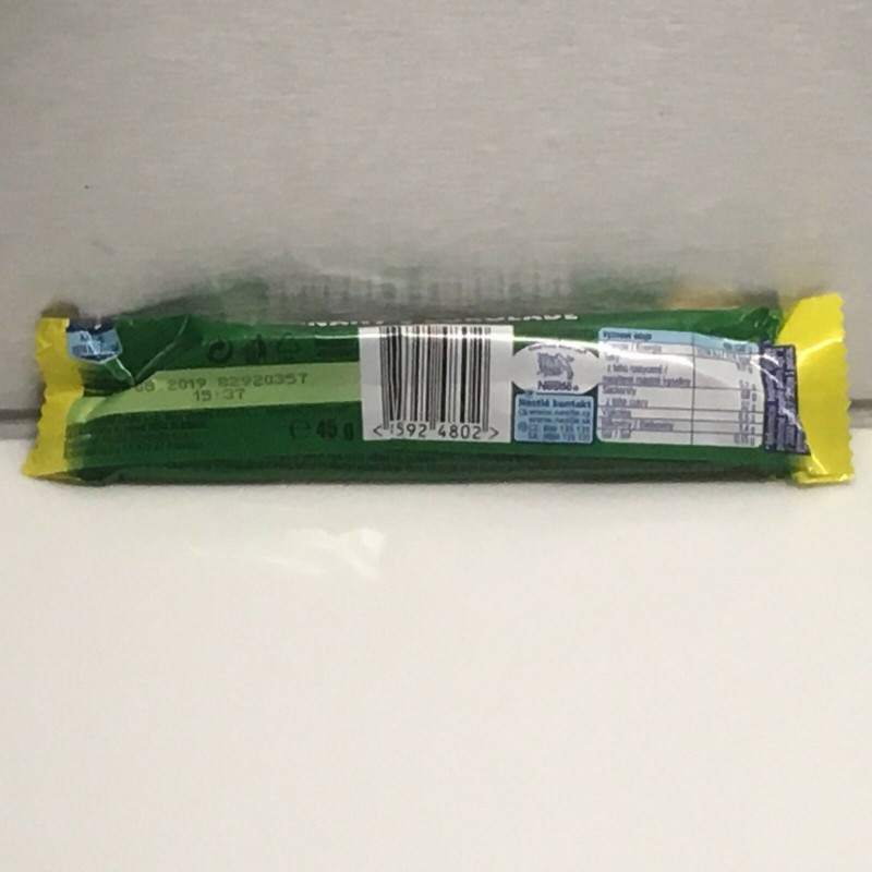 Ingredients: Sugar, glucose syrup, drinking water, cocoa mass, dextrin (soluble corn fiber), cocoa butter, vegetable fats (palm, Shea), milk fat, 0.6% concentrates of banana juice, pectin, lecithin, polyglycerylpolyricinoleate), natural flavorings, dye (riboflavin), powdered milk, besides cocoa butter, it contains bitter chocolate, vegetable fats