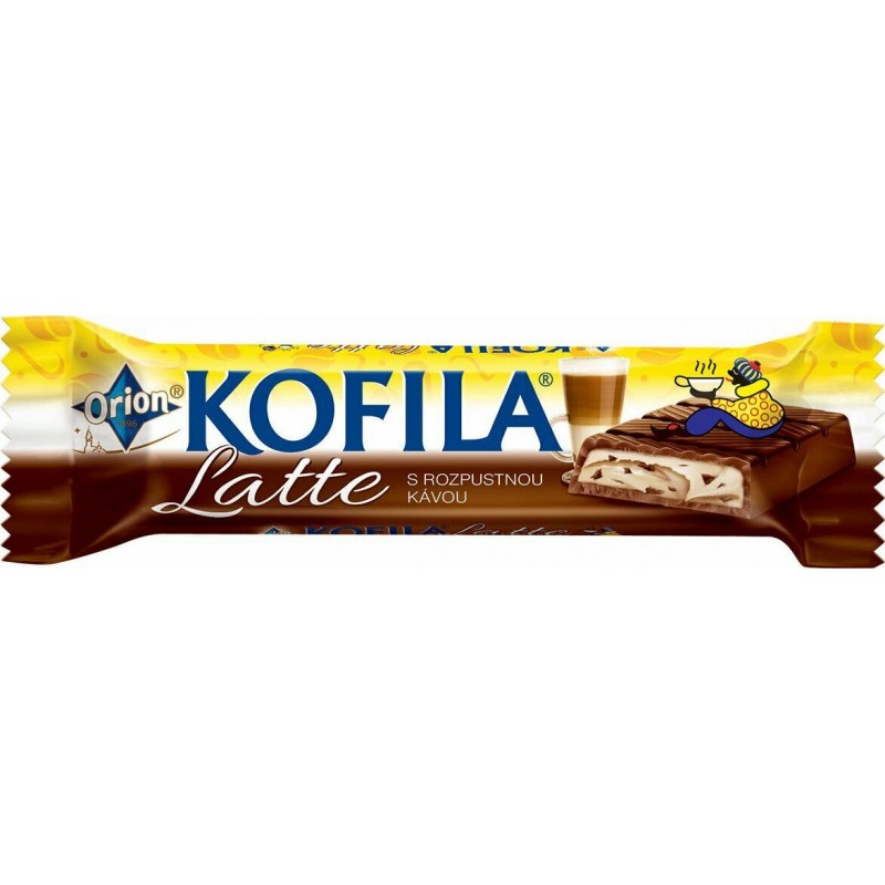 Milk chocolate Orion (50%) with fine coffee filling (50%) produced in Olomouc.