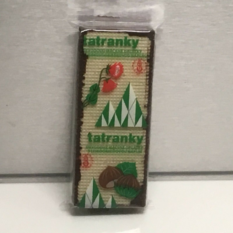 In 1960, a version that had a chocolate coating over the entire wafer area was created, but due to the higher need for chocolate, its production was abandoned. It started producing again after 1989, under the name of chocotatranky. Tatranky was produced by the state-owned Chocolate Company, which was founded in 1947 by Theodor Fiedor's nationalization and merged with other companies, now Opavia. They are also produced in Slovakia.